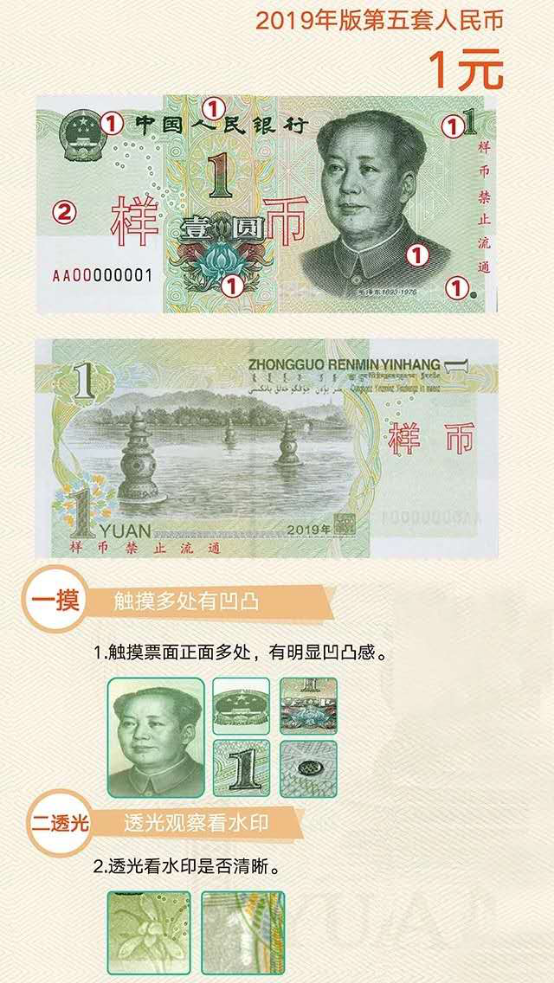 2019年8月30日,人民银行正式发行2019年版第五套人民币。新版人民币更安全、更亮丽、更易于识别。怎样可以快速识别呢?教你三招,一学就会~