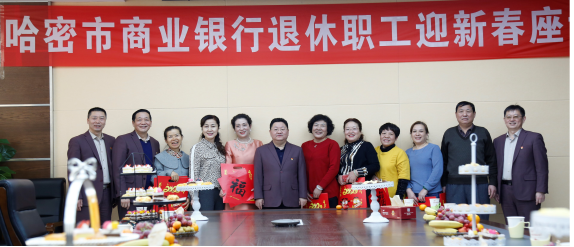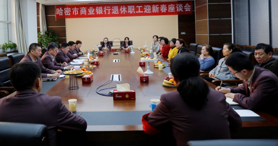 在喜迎新春佳节和哈密市商业银行成立10周年之际,为了让退休职工切身感受我行改革发展成就,加强退休职工思想政治建设,促进老党员、老干部充分发挥作用,哈密市商业银行于1月16日上午,在总行四楼会议室召开退休干部职工迎新春座谈会。党委书记、董事长王黎群,党委委员、监事长吴广亮,党委委员、副行长侯春亮、行长助理温己勇等领导及职工代表参加座谈会。