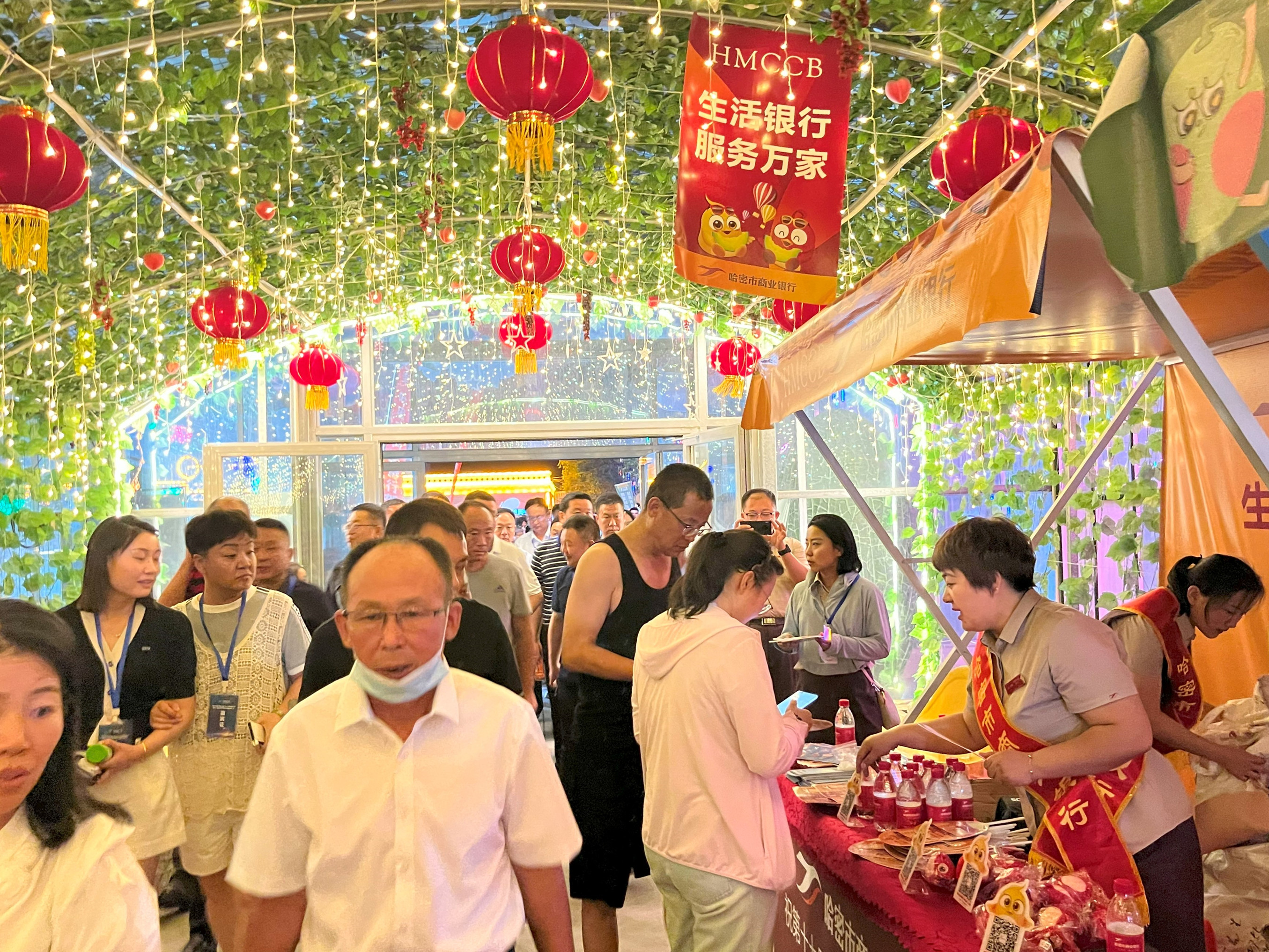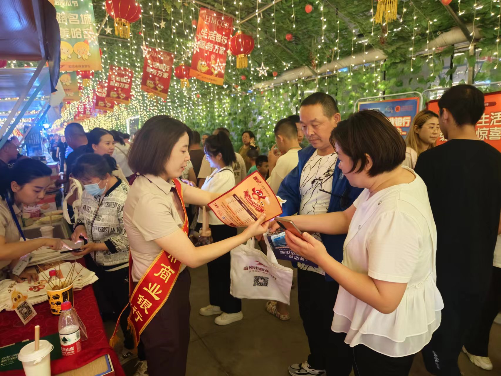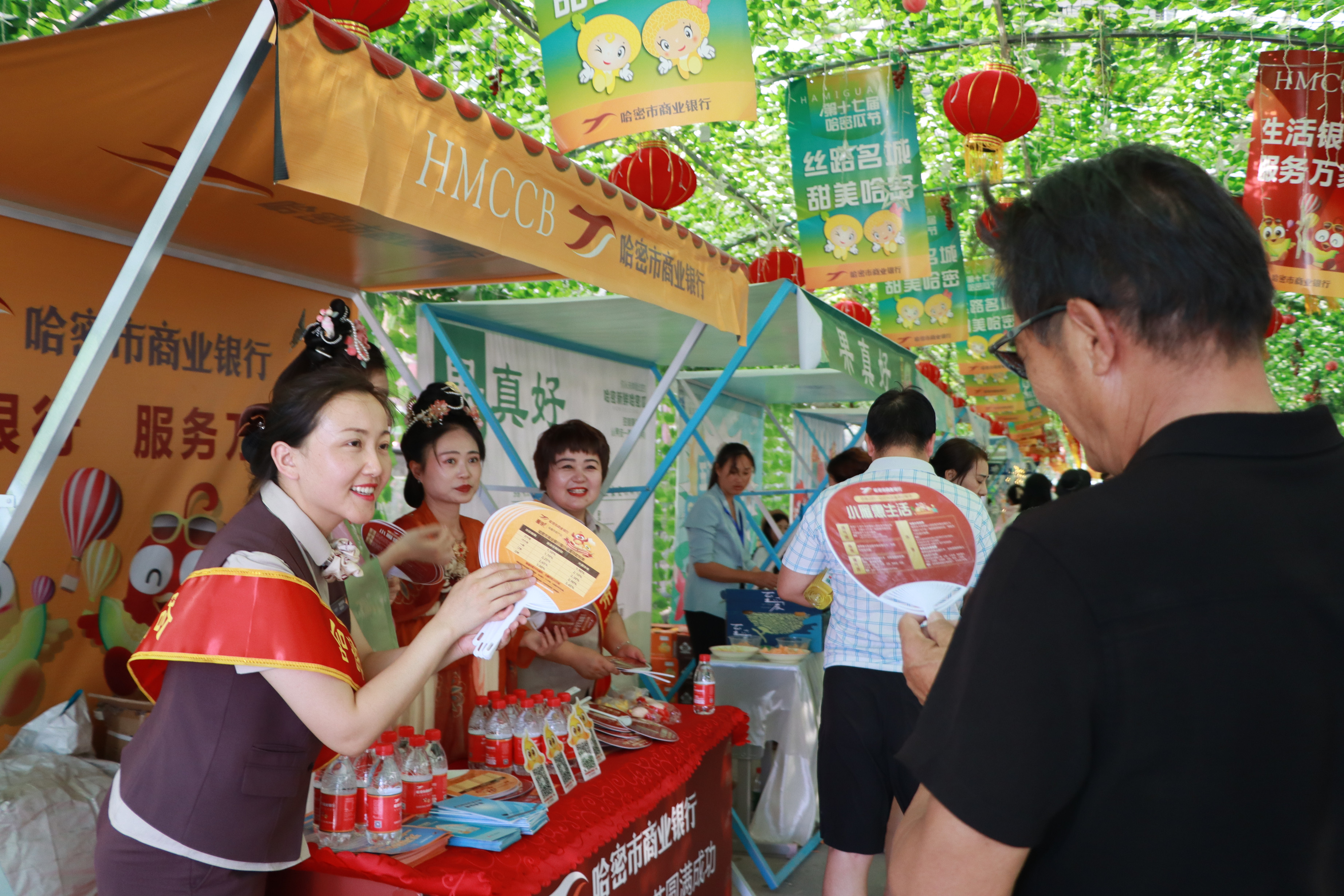 哈密市商业银行以此次哈密瓜节为契机,分别在贡瓜园、阿勒屯古街、文创园、花园乡布放我行飘旗、道旗、主题灯展等氛围展示并驻点宣传,与游客进行“甜蜜”互动,切实加强与哈密各族群众的交流、联动,同时向瓜农和企业积极宣传我行各项三农服务与金融产品,通过组织开展“甜在哈密、吃在哈密、玩在哈密、礼在哈密、乐在哈密”五大系列活动,促进文旅消费。