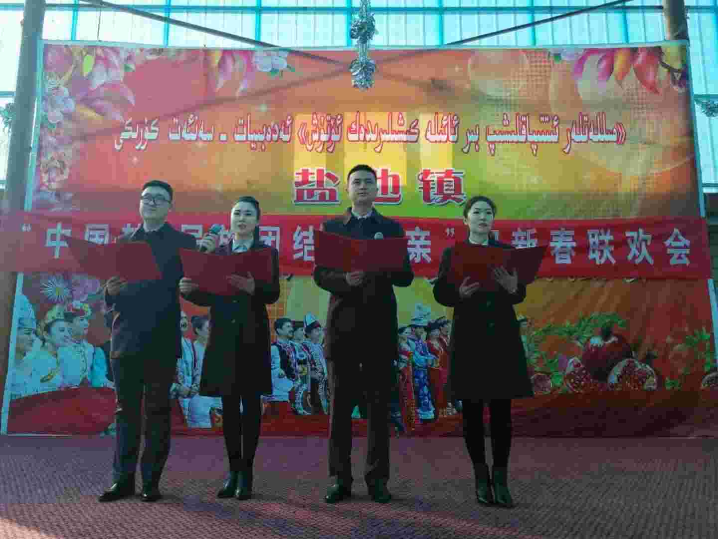 为认真贯彻落实自治区党委决策部署,广泛深入宣传党的十九大精神,全面开展民族团结一家亲活动,2018年2月13日上午,由哈密市商业银行发起的“中国梦、民族团结一家亲” 迎新春联欢会在盐池镇和谐大院举行,哈密市国资委党委副书记、主任祝江、盐池镇党委书记宗世清、商行党委副书记、行长宋良琴、“访惠聚”工作队成员,以及盐池镇的乡亲们共同参加了此次联欢会。